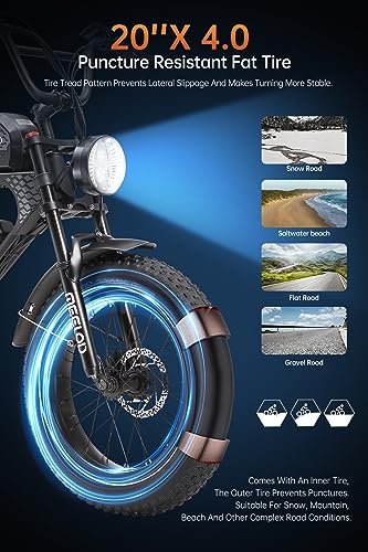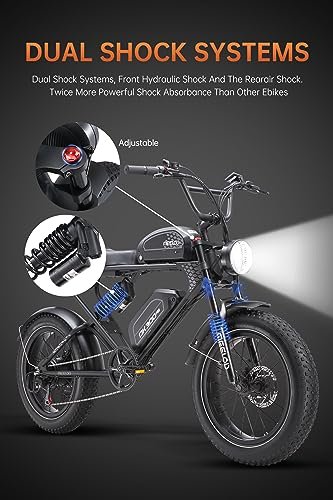 1200W Peak Power Powerful Brushless Motor Intelligence, efficient and safety are its core specials among ebikes. the electric bike is equipped with a 1200W peak power motor, The stronger brushless motor of ebike with lower no-load current, it can provide impressive speed and acceleration, Perfect for off-road adventures or your daily commute. Providing up to 32mph top speed, provides enough power for your daily travel and experience. Dual Larege Capacity Removable Battery – The adult electric bicycles features a 48V/30Ah Removable High-Capacity Lithium Battery,It only takes 7-8 hours to charge. Two charging ways, charging on the bike or removing the battery for charging, don t worry about being stolen.Providing up to 120miles with pedal assistance range (60-mile range in pure electric) per full charge, The battery range is greatly improved compared to a single battery pack! Intuitive Color Screen LCD Display -The 2.4-inch LCD screen has an IP67 waterproof rating, and can display important information such as Battery Capacity, Riding Speed,Headlight,Maintenance tips,Gear Display,Riding average speed,Mileage accrual,The right handlebar is linked to the 7-speed gear to achieve no torque amplification. Bluetooth 4.0 and Type-c 5V1A charging port add convenience to your riding experience. Equipped with Front and Rear Four-Piston/Shock Absorbers -Using MEELOD brand front and rear four-piston hydraulic brakes. The front suspension adopts double-tube hydraulic shock absorbers with adjustable damping preload. It is recommended to soften the shock absorber when encountering soft mud or sandy road conditions, and to harden the shock absorber when encountering hard asphalt road. The rear suspension utilizes a central air shock with an air compression kit. 3 working modes&SHIMANO 7-Speed Gear – A powerful Mountain Ebike boasts 3 riding modes: pedal assist mode, full electric mode and pedal mode. delivering exceptional hill-climbing power and seamless shifting. Versatile Shimano 7-Speed Gear System Shifter And Derailleur OfferResponsive, Quick, And Precise Shifting For YouToride On Both Flat Ground And Steep Hills WithMax Efficiency And Ease. Versatile Terrain Adaptability&Safety First – Fat tire electric bike with its 20 x4.0 Fat Tire,it has anti-puncture effect. In extreme cases, it should be able to be pierced by sharp objects without leaking, so as to ensure the riding arrangements. This Electric Bicycle is adaptable to various terrains. The cruiser bike comes with an 48V LED integrated headlight, a LED rear light that illuminates the way forward,making it safe and visible for night riding. Reliable After-Sales Support – Please keep the original package for a while, if you want to return adult electric bike, please contact us and we will send you a return label. Email: service77@meelod.com . Should you have any questions or concerns regarding installation on electric dirtbike, maintenance, or any other aspects, Also can contact with us. Our professional after-sales service team is dedicated to providing you with reliable support. Easy to Assemble – The electric street bike comes with all the necessary tools and instructions for an easy and straightforward assembly process.This e-bike comes 85% assembled. It allows different sized riders to use the bike easily and improves overall comfort when riding on rough terrain. You can assemble it within 30 minutes and start your adventure right away. Convenient Parts Replacement Design – We have designed replacement connectors for all electrical accessories for our motorized bike. If you need to replace the parts, you can replace it directly at the connector without opening the controller to find a complicated circuit. After-sales replacement of accessories is much more convenient. Premium Material&Classic Retro Design – Our Adult Ebike features a Carbon Steel ensures maneuverability and efficient cycling, While the Carbon Steel double-walled rims offer durability and a faster, Drag-free ride. DK300max Commuting Ebike with an impressive retro frame design, combined with a modern electrical system, Electric bike for adults is a true example of the classics, both stylish and retro. riding it is like stepping back in time to that exciting era.