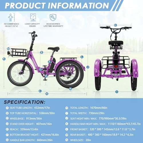 Certified Safety and Quality: Our adult electric tricycle meets UL2849 (Report No. ZKT-2310097631S) and UL2272 (Report No. ZKT-2310318302S) standards, ensuring the highest levels of safety and quality. Durable Aluminum Frame: Built to last, the folding electric tricycle is featured with the 6061 aluminum bike frame, ensures strength and longevity, providing a sturdy foundation for your rides Removable Battery Pack: Comes with a 48V 14.5Ah removable battery, covering a range of 35-45 miles per full charge., you ll experience extended riding time and the flexibility to charge on the go 500W Motor and Rear Speed Differential: The electric trike comes with a 48V 500W helical motor. Not only enhances your speed and torque but also eliminates any concerns of startup slippage, guaranteeing a smooth riding experience Foldable Convenience: Enjoy easy portability and storage with its foldable design, making it perfect for commuting and storage in small spaces. Benefit from the spacious front and back baskets, combining stability and ample storage for your trips