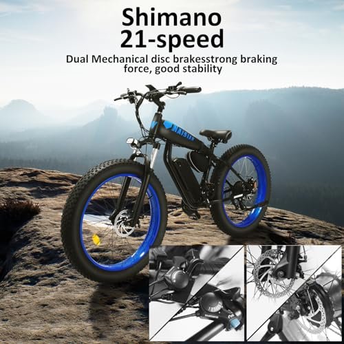1000W Ultra-DRIVE MOTOR Naisian adult electric bicycle is equipped with a powerful 1000W gear hub motor. With 1000W motor power, you can easily conquer the most rugged terrains,dominate any ebike mountain bike trail.It is the best choice for off-road, mountain, outdoor, long-distance travel.Get your ebike and keep wild on Naisian! 48V/14.5AH Removable Battery & 50Miles Long Distance Our electric bike for adults state-of-the-art 48V 14.5AH battery ensures you can ride longer and farther, putting an end to your range anxiety. The Naisian electric bike will deliver the power and endurance you need, which is ideal for adventurers and daily commuters alike and your perfect companion. Embrace the power, embrace the adventure. Experience the freedom to explore without limits. Advanced Shock Absorption System The electric dirt bike not only uses a front fork suspension, but also has an advanced rear air shock absorber. Unlike traditional shock absorbers, air shock absorber is designed for the off-road riding, which can be adjusted to the level of firmness or softness, offer superior durability and require less maintenance. It is generally lighter, contributing to increased efficiency and better battery life, allowing you to ride smoother and farther. Professional & Safe Riding The ebike equipped with hydraulic brakes, which is designed for both safety and precision, take you experience superior stopping power and control. Tackle any incline with ease using the professional 21-speed gearing system. Whether you re climbing steep hills or cruising on flat surfaces, this system offers precise shifting for optimal performance. Colorful LCD display instrument panel helps you easily read various data about your ebike. All-Terrain Dominance Our ebike for adults features robust 26 x 4 fat tires, offers superior grip, shock absorption and stability. From sandy beaches to snowy paths, and rocky trails to mountain road, our fat tire ebike conquers a variety of terrains effortlessly.The electric bicycle takes the height of the rider into consideration and launches 24-inch tires, which are suitable for most adult men and women. Don t need to worry about the ebike being too high or too low any more.