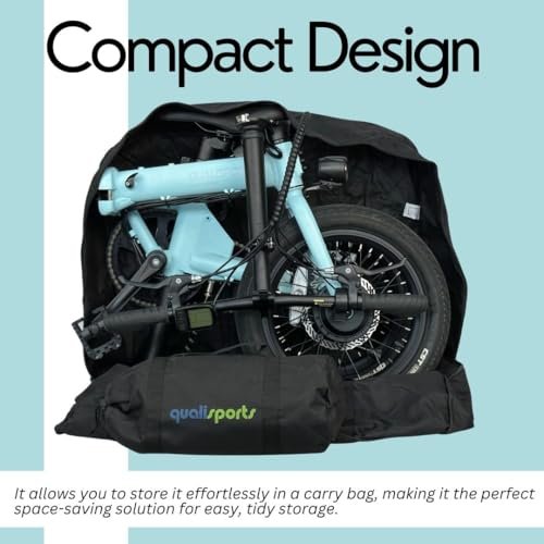 Folding bike, adult brand qualisports number of speeds 1 color powder blue wheel size 16 inches frame material aluminum suspension type rigid special feature folding included components mudguard, tool kit.