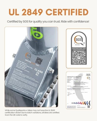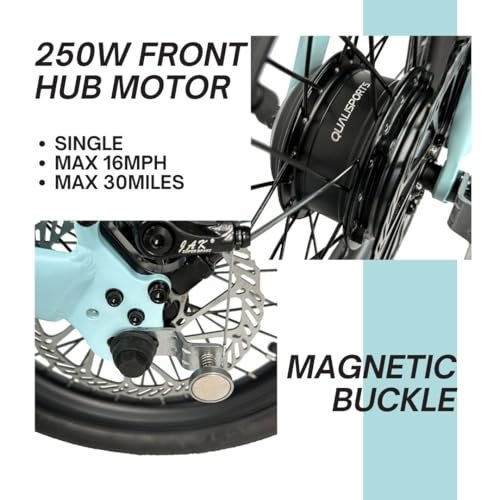 Portable Compact Easy Folding Ebike: Weighing around 30lbs and folding down to a compact size of 29.3 x 15.75 x 25.2 , the Nemo E-bike is lightweight and easily foldable, ideal for storage in tight spaces like apartments, closets, RVs, boats, and aircraft. Powerful Hub Motor: Engineered with a 250W front geared hub motor, delivering smooth rides across diverse terrains while maintaining precise control and efficiency. Seatpost Battery: Powered by a removable 36V 7Ah lithium battery, Nemo charges fully in just 3 hours, whether on or off the bike. Protected by a BMS system, the battery offers extended range and safety against overcharging and overheating. Flexible Ride Modes: Featuring versatile ride modes suitable for various preferences and terrains, including pedal-only mode for leisurely rides or exercise, throttle-only mode for effortless cruising, and 5 level pedal-assist mode, making it easier to adapt to different road conditions. Ride with confidence! Our Qualisports ebikes are proudly certified 2849 by trusted organizations SGS/TUV, ensuring top-notch quality and safety standards for your peace of mind.