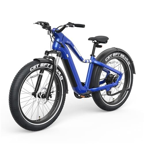What is it built for If you mostly ride on pavement but still want to explore dirt trails, then this electric bike is the perfect choice for you. It offers a mix of versatility and pure fun, whether you use it for your daily commute, as a weekend plaything, or for leisure rides. Built to Last: The frame of each OKAI Ranger bicycle is crafted from high-quality Aerospace-Grade aluminum, ensuring a combination of durability, performance, and aesthetics. It s the one you re excited to ride. Embark on an adventure and feel the strength of the OKAI Ranger adult electric bike, equipped with a powerful 1000W peak power BAFANG rear hub motor that provides 80 torque. We got all that terrain, Dependable RST hydraulic suspension fork with 80mm travel and lockout, allowing you to tackle various terrains with ease and efficiency. And the 26*4 inch fat tire holds up really well with great puncture protection. Long-Lasting Battery: This e-bike s battery pack, made of Samsung cells, is UL-certified for reliability. Its replaceable design and IP67 resistance add to its durability. Additionally, a spare battery can extend the range further, providing even more flexibility for your journeys. The integrated LCD touchscreen, charging port, and controls are simple to use and intuitive. Check your assist level, range, speed, and more bike information at a glance.