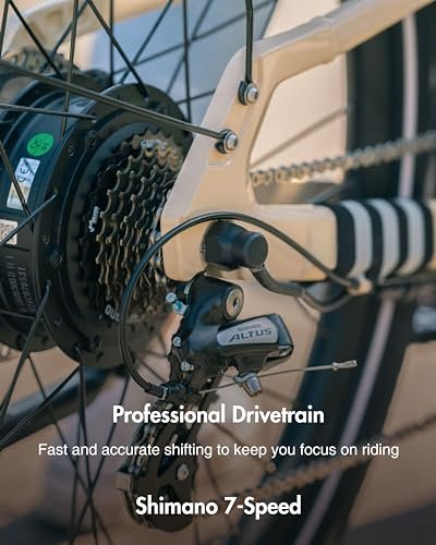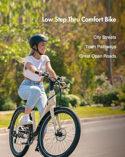 OKAI Stride Electric Bike, 25mph Power by 750W Motor, Removable Battery Up to 40 Miles, 7-Speed Drivetrain, 27.5″ Tire, Electric Bike for Adults with 3 Pedal-Assist Levels, Bicycle for Women & Men