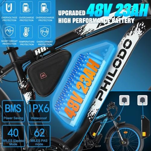 PHILODO Ebike Battery, 48V 23Ah Bike Battery H8 Battery