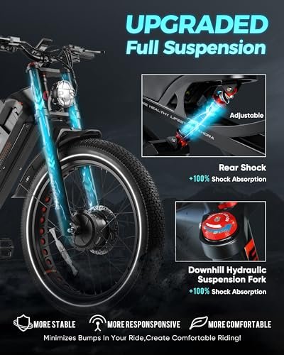 Romeo Pro II/Romeo Pro 3000W/1200W Electirc Bike for Adults 52/48V 60Ah 100-200 Miles Long Range Ebike, 26″*4.0 Fat Tire Electric Mountain Bike Full Suspension Electric Bicycle with APP Control