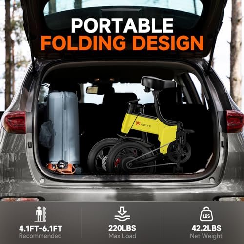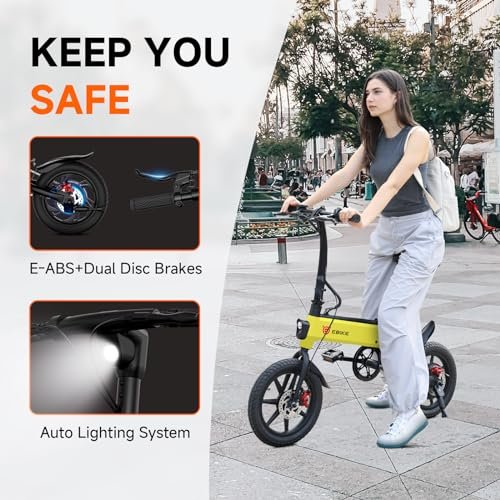 3 Riding Modes SISIGAD electric bike is equipped with a powerful 450W motor with speeds up to 18 mph. The e bike is equipped with a 36V 7.8Ah lithium battery, which can be fully charged in 6h. Range in pure electric mode is 18 miles (Volunteer weighs 145 pounds). The electric bicycle has 3 working modes (Pure Electric Mode, Electric Assist Mode and Ordinary Bicycle Mode). Provides greater range and flexibility for your daily riding. Lightweight and Space Saving This portable electric bicycle is equipped with 14-inch pneumatic tires with good shock absorption. The front and middle parts of the bicycle can be folded, and the folded size is 29.7*14.3* 24.2 inches. With a net weight of 42 pounds, adult women can easily lift and carry it on public transportation. Smart Display The electric bicycle is equipped with a full-color LCD display, and all important information, such as battery power, speed, mileage, riding mode, etc. are clear at a glance. You can connect to SISIGAD APP via Bluetooth to enable GPS navigation, anti-theft, etc. Give you a smarter riding experience. Safe Riding Day and Night Using dual disc brakes, the braking is sensitive and smooth, to ensure safe parking. LED headlights and brake indicator taillights make night riding safer. Suitable for daily commuting, campus riding, park cycling, vacation camping and other outdoor needs. Easy Assembly and After-Sales SISIGAD adult ebike has passed strict UL2849 certification. The folding electric bike would arrive 95% assembled, easy to assemble and comes with installation tools and user manual. If you encounter any problems, please feel free to contact us via order or email, we will provide you with a 180-day warranty and free replacement parts.