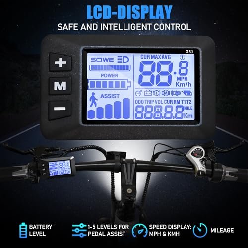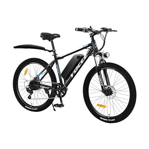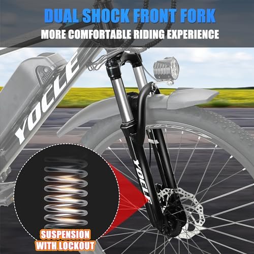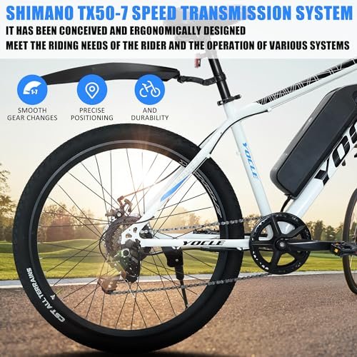350W Motor & Upgraded Display: YOCLE Electric Bike equipped with a 350W brushless motor, boosted a top speed of 20 MPH. The LCD display panel has adjustable backlight brightness from 1-3 levels. In addition, upgraded LCD Display provides more powerful data support, such as, SCIWE/POWER/ASSIST/CUR MAX AVG/SPEED/ODO/TRIP/VOL/ERROR CODE/WATT/MAINTAIN Removable Large Battery: The ebike is equipped with 288Wh 36V 8AH lithium-lon battery, which covers a range of up to 25-40 miles per charge for 5-6 hours so that it can meet travel or daily commute needs. Removable battery makes charging more convenient, you can choose to charge it on or under the frame, whether you are at home or in the office. 4 Working Modes: YOCLE Electric Mountain Bike has 4 modes. PAS Mode The motor will assist you with a moderate amount of power as you pedal the bike, kick in 1 of 3 levels pedal assist to suit your needs. Pure Electric Mode Twist the throttle in any increments of power you desire. Pedal Mode Pedal the bike normally as you would any bike. Booster Mode: The e-bike will travel at 4.5~7.5km/h based on different road conditions). When you re going uphill, it helps you push the e-bike. Riding Comfortably: The 26 puncture resistant tires are for greater durability. A high-strength front fork suspension, 7-Speed gears, dual lights, LCD display, front and rear mechanical disc brakes can take your riding more comfort, make your e-bike adapted to complex road conditions and keep you safe. Classic Look & Lightweight Frame: The YOCLE electric bike is a classic, efficient, city style electric bicycle. Classic, minimalist and stylish look that only weighs about 50 pounds. The triangular high-carbon steel frame provides more comfortable stability for riding. 26 Electric Bike for Adults