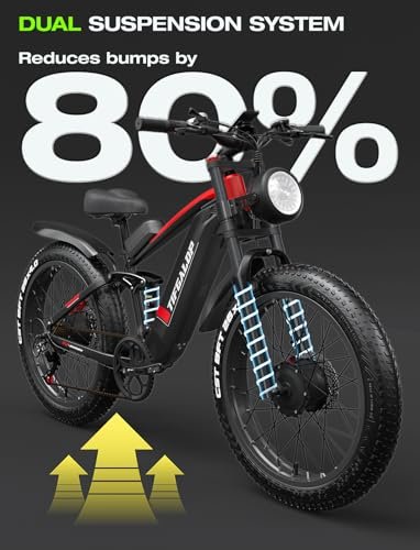 BUY E-BIKE TO GET BUNDLE 179.95USD ES28PRO electric bikes feature a Heavy-Duty Chain Lock , a High-Quality Phone Holder , Rearview Mirror and Helmets . Buy now and get these valuable accessories included! MAX 50MILE LONG RANGE Capable of 30 miles on a single charge in electric mode or 50 miles with pedal assist, this e-bike features a 52V22AH removable battery, which is both durable and IP54 waterproof. It takes 6-8 hours to fully charge. 2000W DUAL MOTOR & MAX SPPED UP 37MPH This model packs a punch with a dual 2000W brushless hub motor, hitting speeds of 37 mph on electric power alone and tackling 40-degree inclines with ease. FULL SUSPENSION SYSTEM Mountain electric bicycles have front and rear hydraulic Shock Absorbers, which provide a smooth shock absorption effect during riding and effectively alleviate the impact and rebound of the road surface. You can enjoy a smoother ride on various complex terrains. 26 FAT TIRE Fat tire e-bike that gives you great traction. You can easily ride through gravel, beach, snow, rain, dirt, sand, and even ice for a great ebike adventure. Dual hydraulic disc brakes are more sensitive, stable, and safe. FOUR RIDING MODES Offering electric, pedal-assist, manual mode, and cruise mode. The electric bikes for adults adapt to your preference with an intuitive LCD for easy control. The 7-speed gear system is versatile for various riding styles. It also equipped with bright front LED lights and chargeable rear lights to enhance night-time visibility and safety. RELIABLE SUPPORT tifgalop electric bicycles are ready to assist you with any inquiries or concerns including 180-day parts replacement service. Rest assured, your satisfaction is our priority.