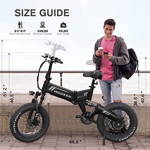 POWERFUL 500W MOTOR & REMOVABLE BATTERY: The electric bike with a 500W brushless motor is able to achieve a top speed of 19.9MPH(around 20MPH), a maximum Slope of 15 . 48V 10Ah lithium-ion battery ensures a long range of 50-60 miles in pure pedal assist mode per charge. The removable and lockable feature makes it convenient to charge on/off the bike, fully charged for 5-6 hours. DUAL SHOCK ABSORBERS & DISC BRAKES: 20 inch electric bike for adults adopts dual shock suspensions to absorb and smooth out bumps, rocky and uneven terrain. Benefiting from the dual disc brakes, you will get immediate responsive stopping distances when needed. Both offer you double safety and comfort while riding. RELIABLE EBIKE COMPANION: LCD display on this electric bicycle clearly shows the battery, power assist levels, speed, mileage, and more. Other reliable e-bike designs like 20 x4.0 puncture-resistant fat tires, adjustable handlebar, saddle and kickstand, reflectors, headlight and horn, create a safe and smooth ride over all types of surfaces. Always be your best companion on the roads. EXCELLENT RIDING PERFORMANCE: This Electric bikes perfect your riding performance with professional 7-speed gears and 4 riding modes.Throttle Ebike & Pedal Assist Bike & Regular Bicycle & Booster Mode ( the adult bike will travel at 3.73 miles/h, which depends on the road condition) easy to push your ebike uphills. Combining four riding modes, it is fun to ride around the neighborhood, park trails, city streets, mountains, and beaches. FOLDABLE & ADJUSTABLE DESIGN: The sturdy aluminum alloy frame, foldable and adjustable mechanism allow you to carry folding electric bicycles anywhere you want. With a folding size of 14.2*21.3*11.8inch, it perfectly fits your SUV, office or living space. Add miles of joy to your trips and adventures. WORRY-FREE ASSEMBLY & SUPPORT: This electric mountain bike comes 85% pre-assembled. The assembly video and user manual are on the product page. Electric bicycle weighs 62 lbs, max load 330 lbs/150kg, recommended height: 5.4-6.4ft. 1-year guarantee for bike parts and lifetime technical support are covered. If you have any problems with the e bike for adults, please feel free to contact us. Electric Bike