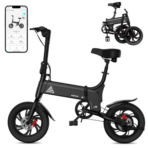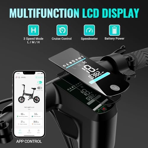 Powerful Riding Performance : Our foldable electric bike is equipped with a 350W motor that peaks at 500W, and allows you to easily reach a max speed of 18mph. The 36V 7.8Ah battery provides up to 18 miles of trip dist, it provides enough electricity for your daily commuting, campus, park, and beyond. Smart App Control :Our electric bikes are equipped with a smart LED screen. You can directly check the battery level, travelling speed and other information. You can also connect to the TST Ebike app via Bluetooth on your mobile phone. On our app you can turn on the e-bike s cruise control and smart auto-lighting function. Our e-bikes also have three riding modes (pure electric mode, electric assist mode and ordinary bicycle mode). Portable and Foldable Design : Our small electric bicycle are designed for portability. This adult electric bike can be easily folded and stored into the trunk of a car or brought into the subway, making it the best commute and travel companion. Weight: 42LBS 19KG(Most adults can easily lift), Folded size: 75.5*36.5*61.5cm/29.72*14.37*24.21in. Safe and Comfortable Riding : The adult electric bicycles has 14 pneumatic tires, which can provide a better traction and a smoother riding experience. Dual disc brakes ensure potent stopping, enhancing safety and comfort. The use of a bright headlight and brake indicator taillight makes night riding safer. Quick Assembly and Warranty Assurance : Our TST e-bike has passed the strict UL2849 test,The e-bike is easy to assemble and most of the work has already been done, and comes with installation tools and manual. Furthermore, we provide a 90/180-day warranty and 24-hour customer service, so please do not hesitate to contact us if you encounter any issues with your e-bike. Tips: For your safety, please unplug the charger before starting the e-bike.