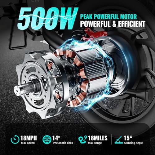 TST Foldable Electric Bike for Adults, Small Electric Bicycle 500W Peak Motor, Commuter Ebike 18MPH, Max 18 Miles Range, 14″ Pneumatic Tires Portable Electric Bike with Smart LED Screen