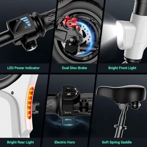 High Quality Motor & Battery Durability : Our foldable electric bike is equipped with a 300W motor that peaks at 450W and can easily reach speeds of approximately 16 mph. The 36V 5.2Ah battery provides up to 15 miles of trip dist, providing strong power for daily commuting and biking adventures. 3 Riding Modes : The Ebike has pure electric mode, electric assist mode and ordinary bicycle mode. With three riding modes to meet your daily riding needs, it s a great choice for your daily commute and short trips. You can take our electric bikes for relaxing rides on neighbourhood streets, parks, campuses and campgrounds. Portable and Foldable Design Our mini electric bike are designed for portability. Its compact size and folding buttons make it easy to store in small apartments, offices, or car trunks. (Folded size: 41.41*9.05*22.44inch) Safe and Comfortable Riding : Our e-bike adopts 12 inch pneumatic tyres, which can provide a comfortable and stable riding experience. LED headlight and disc brakes with sensitive braking force ensure a safe ride at night. Assembly and Warranty This e-bike has passed the strict UL2849 test and comes with installation tools and manual. The dual fenders keep your bike clean and dry during rides by protecting it from mud, water, and debris. In addition, we offer a 90/180 day warranty and 24-hour customer service, so please don t hesitate to contact us if you experience any problems with your e-bike.