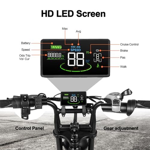 [Motorcycle Style Ebike Under $2000] V20 electric bike is an impressive retro motorcycle frame design for adults, combined with a modern electrical system, it is a true example of a tribute to the classics motorcycle, both stylish and retro. riding it is like stepping back to that exciting time. riding V20 electric bike would gain much glance and praise. [High-Performance Motor]: Tamobyke V20 electric bike is peak 1500w brushless motor(rated 750W), 5 speed throttle and 7 speed Pedel assist, the default 3rd speed is 15.5mph by throttle, Top speed reach up to 27-28mph by unlocking the led digital screen. with Shi-mano 7-Speed Gear System started by pedal assist, its max torque is amazing for tough mountain riding. [Ride Further Distance] V20 e-bike features Large Capacity 48V 15AH removable lithium battery, cover 68 miles range in pedal assist mode (PAS mode) by 5-6H full charge. (The calculation based on rider s weight of 75kg. Range varies according to road condition, weather, rider s weight etc). support to charge battery removed from the ebike at home or office. [Off Road Tire ] The 20 inches fat tires for adults provide an possibility to explore more path, outdoor dirty, grass, beach, snowy road,rainforest adventure. no fearless of punctures. thus make it easy to go through mountain road,downstair, even no fearless of riding in bad weather. [Long-Riding Comfort] it feature double front fork and rear shockproof suspension absorb most of the bumps on the road, providing a more comfortable riding experience. the double mechanical disc brake is for keeping your safe stop and easy to maintain. [Steering Light]:Steering Light is under the rear seat, its control button is on right sode of handlebar, combined with the horn and the bright front light, are equipped for road riding safety at night. [ Top Warranty Service] 30 days free return and all money back, long warranty is provided for the electric motor, battery, charger and other parts. any issue, please message us or call amazon. we offer comprehensive customer support including phone support + 24h Email support(qingmaifactory@163.com).We re here to provide you with 100% satisfactory after-sales service. and respond to you soon within 24 hours. this e-bike quality and service have gained lots of praise from many riders. Tips : Please reserve the original package for some time in case for any issues of electric bike return. if no package please feel easy to contact us. V20 Display Reset : Turn on the display, press the + and – button at same time to enter the setting mode, then press the power button change from 01 to 10 ,then press the + button change from 00 .01 OR 02 , finally exit the setting mode by pressing the + and – button at same time. there is a card titled V20 Display Setting Explaination in package box. please find it or message us for more guide.