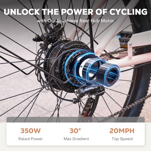 Go Further: Soak up the sights with Viribus s city electric bike! With a lasting 36V 13Ah ebike battery that provides a pedal-assisted range of 50 miles and a full-throttle range of 28 miles, getting wherever you need to go has never been easier 3 Custom Modes: Our 26 electric bicycle works well as a 7-speed cruiser bike, but it shines as an ebike with an adjustable max speed up to the 20mph legal limit and as a pedal assist ebike with five levels at 60, 70, 80, 90, and 100% of top speed Reliable Safety: The e bike s lightweight yet sturdy aluminum frame hauls up to 265 pounds; the front and rear disc brakes provide fast and even stopping power; and the alarm system and headlight ensure you and your investment stay safe and secure Great Comfort: This womens electric bike s clear LED display, wide leather saddle, front basket & rear seat, and USB charging port combine to provide you with superior comfort and convenience during your rides Easy to Assemble: Instructions and assembly video guide quick assembly of our 85% preinstalled e-bike; enjoy greater health and an easier commute with this 350W (Peak 500W) electric bike