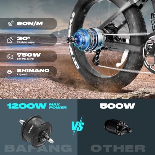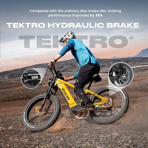 POWERFUL & LONG RANGE: VITILAN T7 electric bike for adult has an internally-enclosed 48V large capacity 20Ah Sam-sung Lithium-Ion battery. Combined with Bafang 750W high-speed brushless rear hub motor (peak power 1200 watts), output continuous strong power which provides a ton of power uphills and across challenging terrain.You can deliver around MAX 70-80 miles range with pedal assistance per charge(5-6h) and max speed can up to about 28 mph.Payload 330 lbs. Recommend rider heights 5 4 – 6 8 EXCELLENT RIDING EXPERIENCE: VITILAN T7 is a fat tire electric bicycle equipped with CST 26-inch large wheel diameter 4-inch anti-puncture tires, whether on or off-road, combined with MOZO adjustable double crown hydraulic front fork and DNM three-level adjustable With air shock absorbers, you can expect better terrain handling, improved cornering capabilities, and an overall smooth-as-air ride. SMART COLOR DISPLAY : The smart color display provides speed, battery level, motor power, gear position, USB charging port and ride password protection, etc. When you ride outdoors, you can clearly see the contents on the meter even in the sun. EXCELLENT BRAKING ABILITY AND GEAR SWITCHING PERFORMANCE : VITILAN T7 electric bike uses tektro dual-piston hydraulic brakes with power-off function. The larger 180mm disc gives you powerful stopping power to stop your e-bike more effectively, even on soft terrain. In addition, with the 8-speed transmission, you can directly switch gears on different terrains to find a more suitable riding effect. 18-MONTH WARRANTY: 85% of the e-bikes are already assembled for you in advance. Frame, motor, battery and charger all have up to 18 months warranty. VITILAN T7 Electric Bike for adults Fat Tire Ebike 750W BAFANG Motor 20AH Removable Sam-sung Battery 26 Inch Mountain 28MPH Electric Bicycle Full Suspension 8 Speed